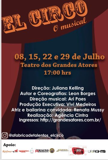 Nos dias 08,15,22, e 29 de Julho El circo é as 17hs e Fábrica de Talentos 2.