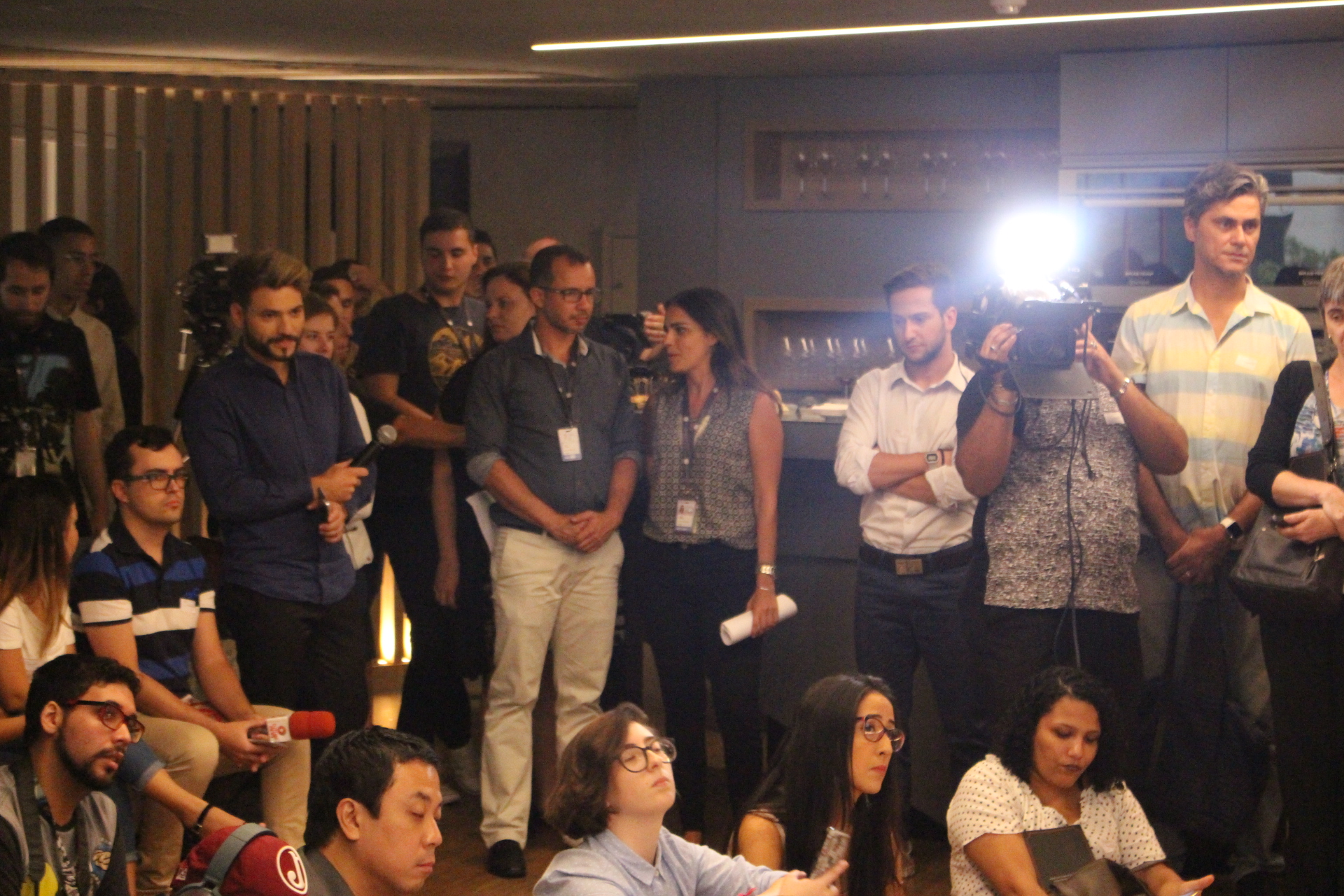 Apresentador Felipe Bronze e os Jurados Emannuel e Ailin