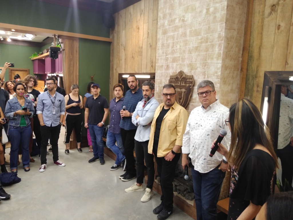 Logo em seguida foram levados a sede para a coletiva com o apresentador Marcos Mion e também com os diretores do programa e o ator e comediante Lucas Salles que estará à frente das entrevistas e tudo o que acontecer na casa nas redes sociais e no YouTube,além de do conteúdo exclusivo do playplus.