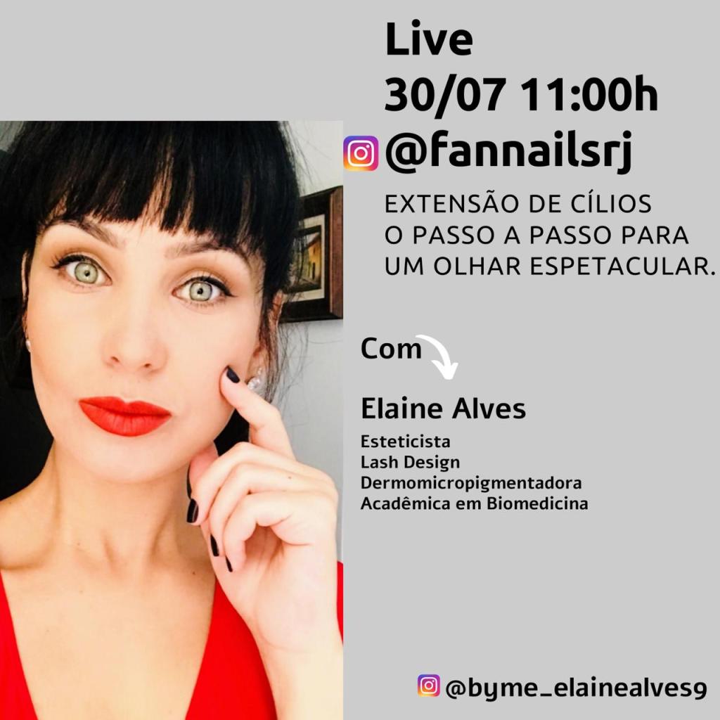 Quinta feira as 11 da manhã você tem encontro marcado com a esteticista e empresária Elaine Alves que apresentará um novo metodo na aréa de extensão de cilios em uma live muito interessante para você que tem dúvidas nessa area.