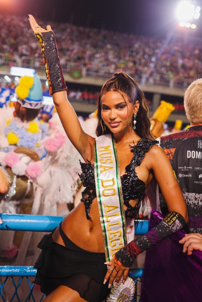 A modelo e musa do Camarote Allegria Juliana Nalu, deu um show de simpatia e beleza no espaço vip. No look, a brasileira transformou a camisa do Camarote em luvas e escolheu um look ousado de um estilista brasileiro, e usou botas Givenchy. Juliana, ex-namorada do rapper americano Kanye West, curtiu a noite com um grupo de amigos e familiares bem pertinho da frisa para não perder nada na avenida.