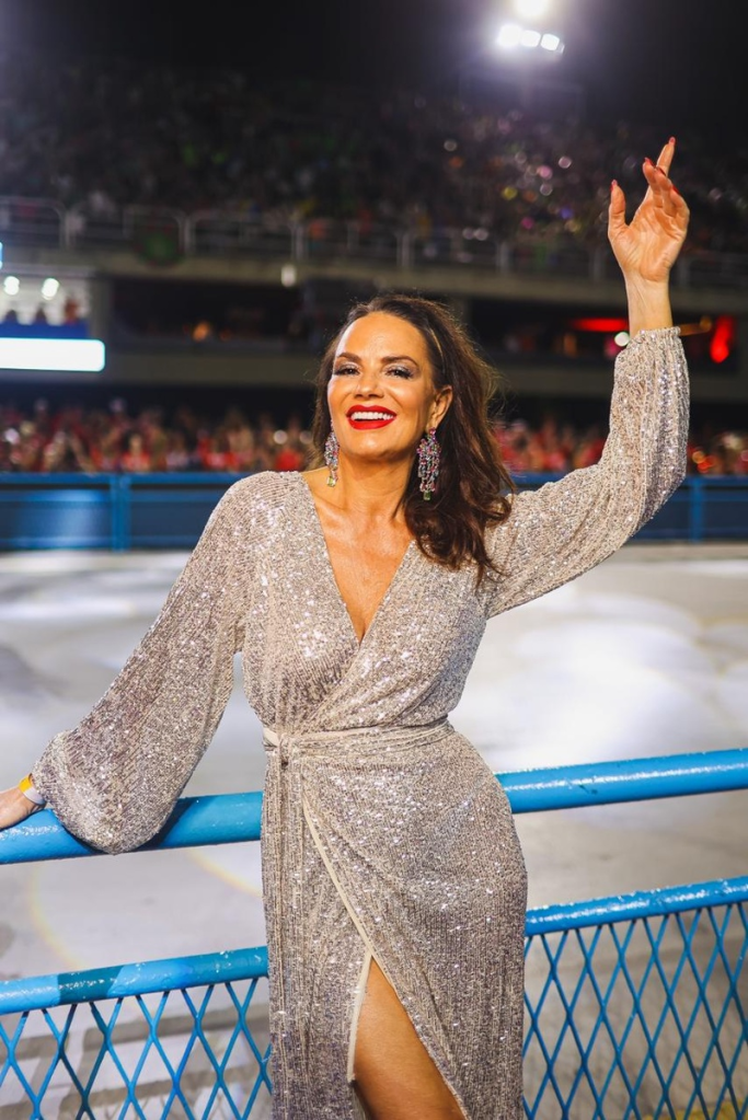 A rainha do Allegria, Adriana Galisteu ousou com um look com muito brilho, justo e com transparência e curtiu cada minuto dos desfiles da noite, com o filho e o marido na frisa do Camarote, esbanjando beleza e samba no pé.