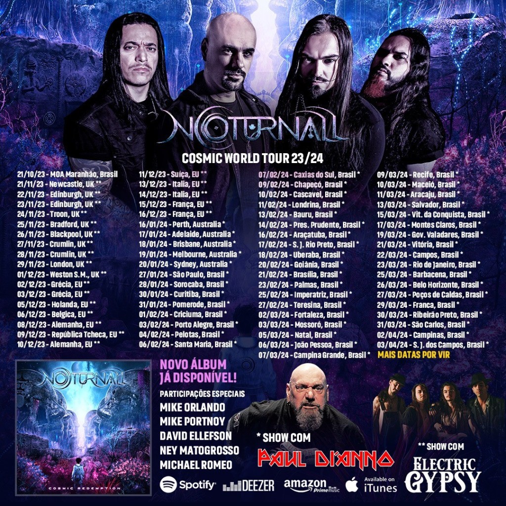 A turnê mundial da banda de Heavy Metal NOTURNALL acaba de ganhar datas em novo continente. O grupo anunciou em suas redes sociais a confirmação de cinco shows na Austrália durante o mês de janeiro de 2024, além de datas em mais oito países da Europa.