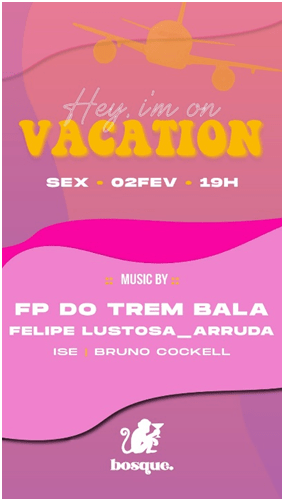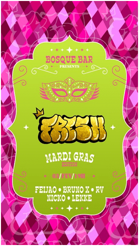 Iniciando o mês de fevereiro, o Bosque Bar anuncia as atrações de quinta à domingo. A casa recebe a tradicional BSQNT convida AdoroFrozen, na quinta-feira, com Roda de Santa Rita, Yasmin Vilhena, Mascote, AdoroFrozen DJs, RR e Bahruth. Vacationcom FP do Trem Balaagita a sexta-feira, ao lado de Felipe Lustosa_Arruda, Ise, Bruno Cockell. No sábado, 03 de fevereiro, é a vez da festa Fresh, Mardi Grass Edition dominar o Bosque ao lado de Feijão, Bruno X, RV, Nicko e Lekke. E fechando a semana, no domingo, dia 04 de fevereiro, o clássico Sambinha do Bosque é garantido por Tudo Junto, ao lado de Rodrigo Ribeiro e Lup. As festas começam às 19h.