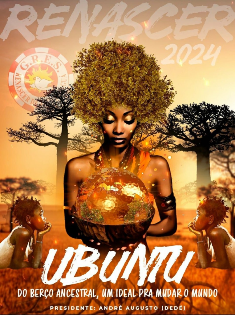 O provérbio diz: “UMUNTU NGMUNTU NGABANTU”, ou seja, “Uma pessoa só é uma pessoa por causa das outras pessoas”. E isto porque a escola vê o samba como instrumento de transformação de vida, capaz de contribuir para uma sociedade mais justa e mais igualitária. Porque realizar a prática Ubúntu… É o desejo da Renascer de Jacarepaguá em 2024.