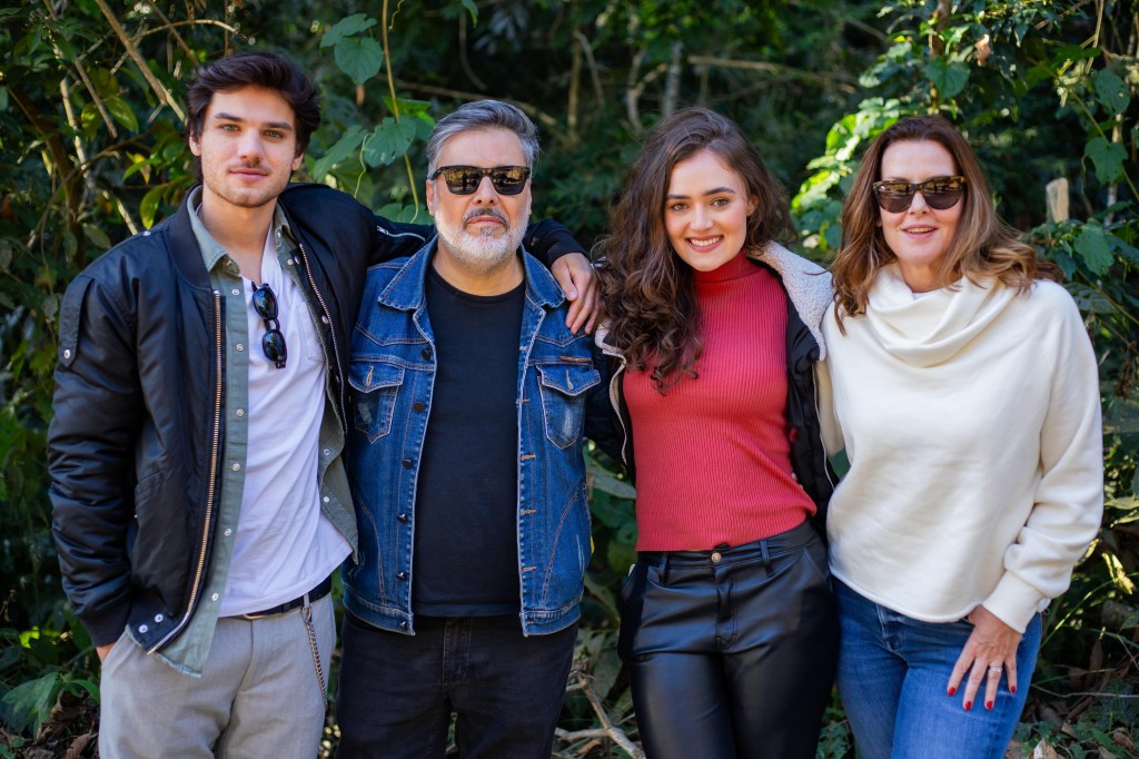 Enzo Ciolini, Marcoz Gomez, Emily Matte e Mariana Costa Pinto nos bastidores de “Não olhe pra trás” em Pedra Azul.