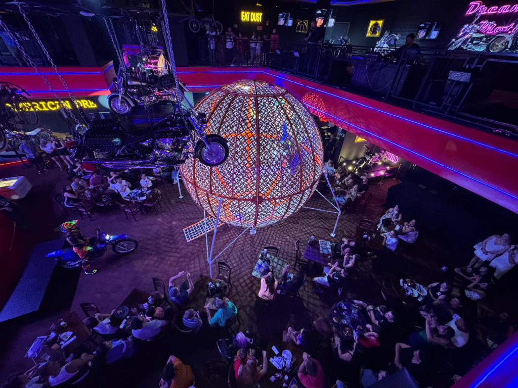 A apresentação começa com um show de mágica, malabarismo e acrobacias aéreas que criam movimentos no ar. Para completar, um espetáculo de motos no Globo da Morte. O Motor Show é o primeiro bar temático no mundo a ter uma esfera de aço gigante com pilotos fazendo manobras radicais em cima de motos.