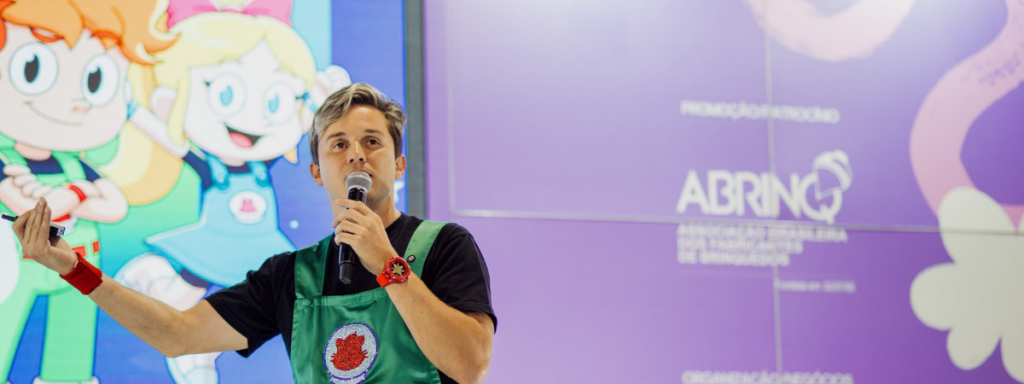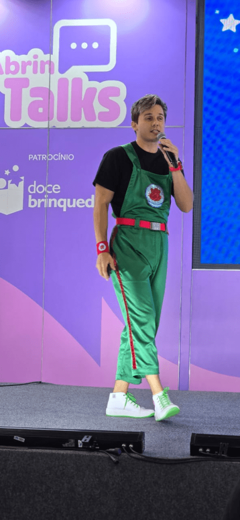 Inovação com o Gato Galáctico Um dos momentos mais disputados foi a palestra de Ronaldo Souza, o criador do Gato Galáctico. Com um auditório lotado, o criador de conteúdo compartilhou sua visão estratégica sobre como transformar vídeos em experiências tangíveis para as crianças. O sucesso de sua palestra reforçou que a criatividade aliada à tecnologia é o caminho para o futuro do setor. Ronaldo destacou a importância de criar brinquedos que estimulem a imaginação, assim como faz em seus vídeos, sendo aplaudido de pé por lojistas e profissionais do setor.