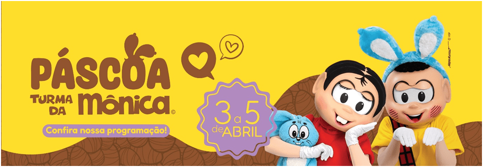 De 03 a 05 de abril, o parque apresenta uma programação exclusiva que vai encantar crianças e adultos, com atrações como o encontro com Mônica e Cascão, a divertida Caça ao Sansão, Oficina de Chocolate, além de dinâmicas interativas com as equipes de recreação. Para completar o clima festivo, a tarde ganha trilha sonora especial com o DJ Danilo.